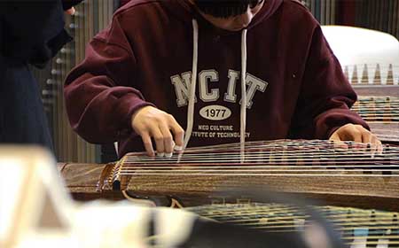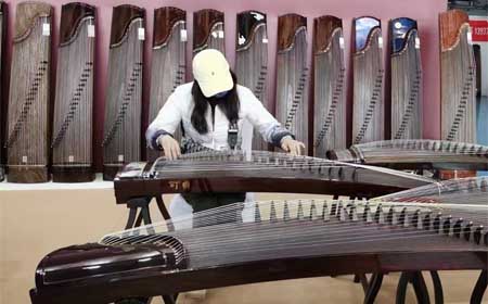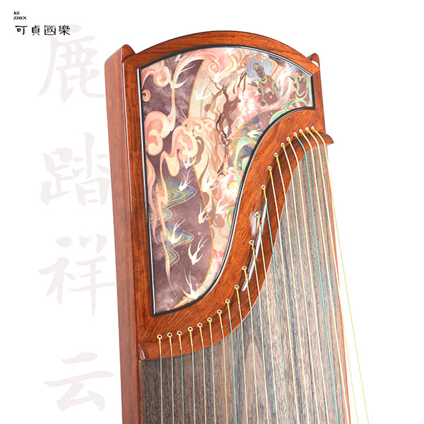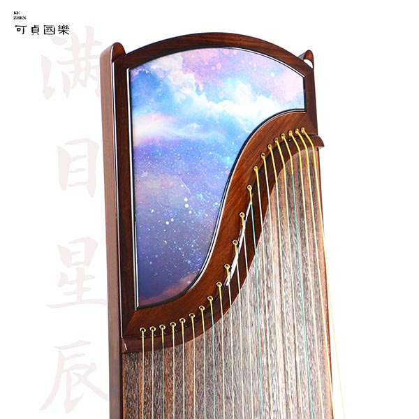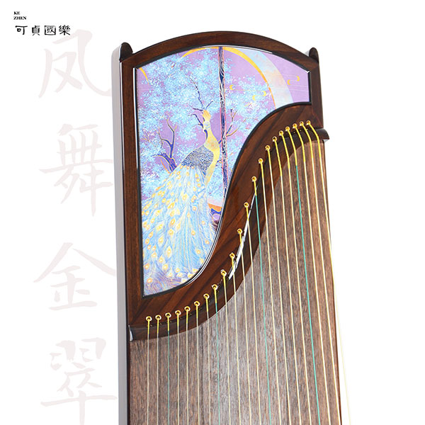 规格:S型21弦/163cm 材质工艺:阔叶黄檀/洒金彩绘 统一零售价:14800元